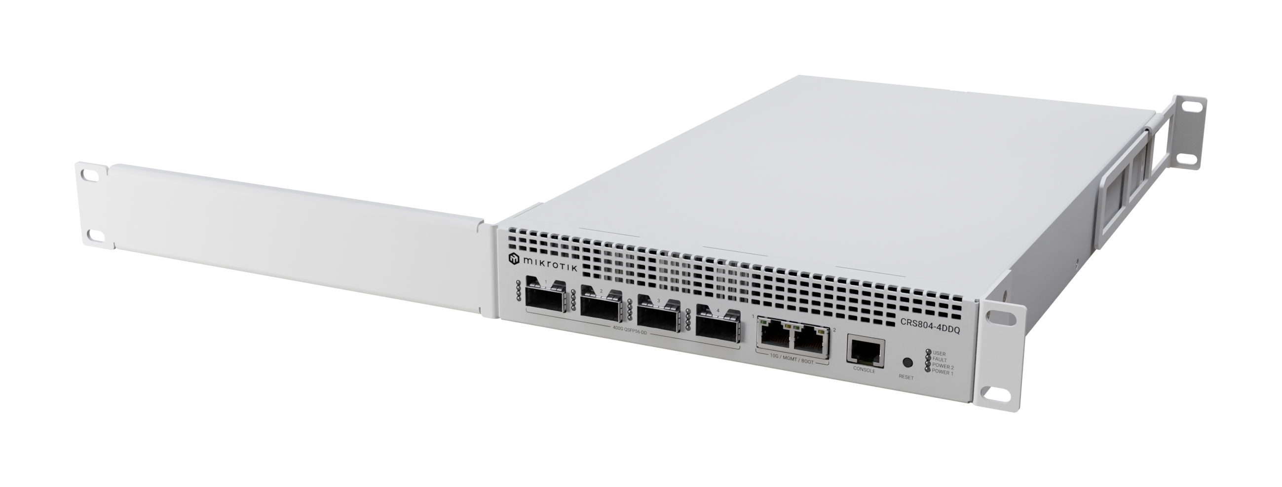 The CRS804 DDQ is a compact and reliable 400 Gigabit switch designed for modern AI workloads and next-generation network upgrades. With four 400G QSFP-DD ports and dual 1/10G Ethernet, it delivers exceptional bandwidth density in a quiet and efficient 1U form factor.
